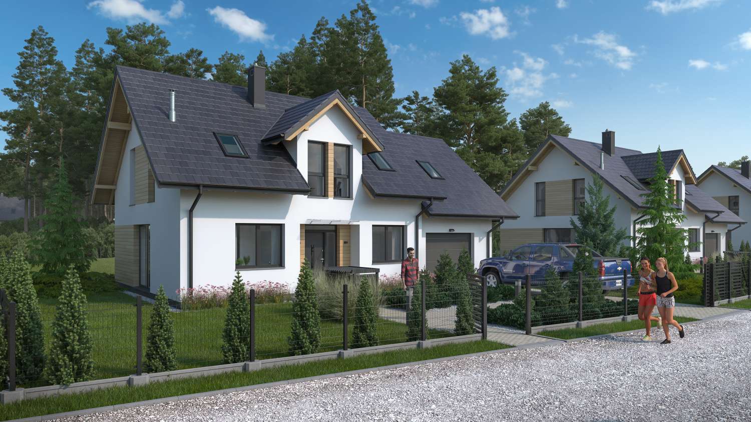 Zobacz jak wyglada zycie w naszym osiedlu. Przestronne domy, piekna okolica i nowoczesna architektura.
